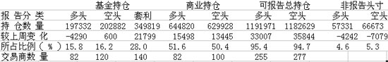下圖為截至08/08/05NYMEX原油期貨分類持倉報告可報告頭寸