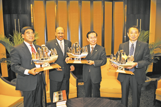 11月7日,中國石化集團公司總經理蘇樹林(右二)、中國石油天然氣集團公司總經理蔣潔敏(右一)、中國