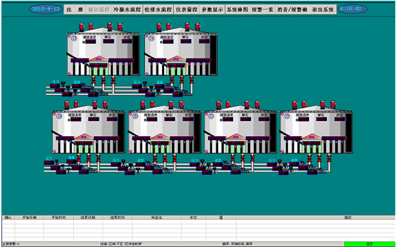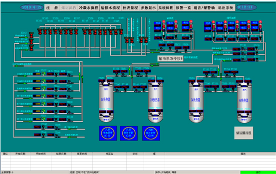 在流程圖上,操作員可以方便的查看主要的參數(如:液位、流量)以及系統各設備當前的運行狀態,同時通過點擊系統流程圖上的各個可控設備實現生產的遠程控制