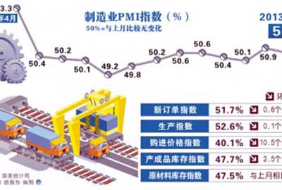 中國物流與采購聯合會、國家統計局服務業調查中心1日發布的數據顯示,4月份中國制造業采購經理指數(PMI)為50.6%,連續第7個月高于50%,仍處在平穩區間。