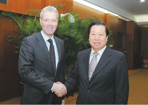 4月8日,環境保護部部長周生賢在京會見德國聯邦環境、自然資源和核安全部部長羅特根,雙方就共同關心的問題交換了意見。
