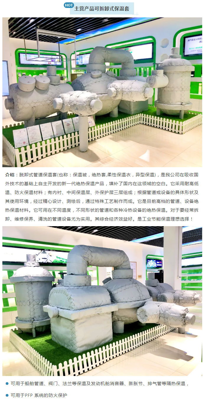 我公司是國(guó)內(nèi)較早系統(tǒng)地從事“可脫卸式管道保溫套(衣)”的研究、開(kāi)發(fā)、生產(chǎn)的企業(yè)。近年來(lái),公司引進(jìn)先進(jìn)設(shè)備,秉承專業(yè)的理念,從“高溫防火紗線整理→防火隔熱布(毯)制造→防火隔熱面料加工→現(xiàn)場(chǎng)測(cè)繪、設(shè)計(jì)→制作→安裝”等全部生產(chǎn)工序都由本公司自行完成。管道保溫套所用材料均為本公司自己直接生產(chǎn)(包括縫制專用高溫防火線),這就使“產(chǎn)品質(zhì)量、多品種生產(chǎn)、快速交貨”等得到了充分保障。