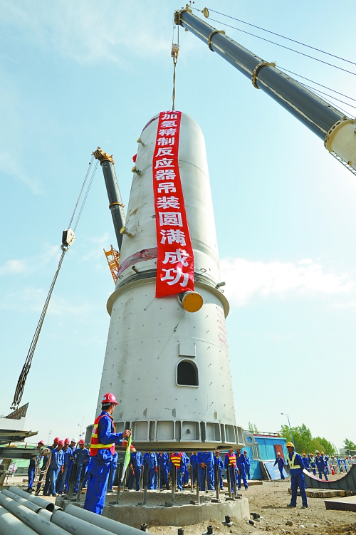 呼和浩特石化煤柴油加氫精制R101反應(yīng)器吊裝成功