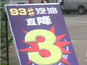 加油站旁邊的93#汽油降價宣傳牌