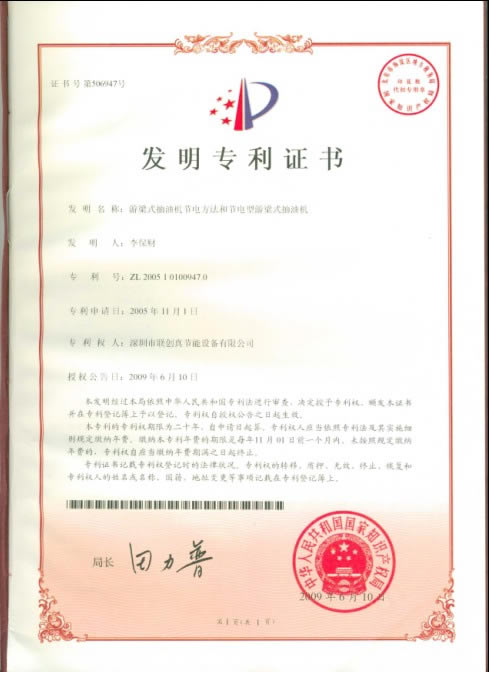 由深圳市聯(lián)創(chuàng)環(huán)保節(jié)能設(shè)備有限公司承擔(dān)的2006年國家火炬計(jì)劃項(xiàng)目《油田游梁式抽油機(jī)節(jié)電器》,經(jīng)過5年的努力,投入了大量的資金,幾十次到全國各大油田搜集數(shù)據(jù)、采油試驗(yàn),于2008年底完成了樣機(jī)生產(chǎn)。經(jīng)過大慶油田、河南油田、中原油田、克拉瑪依油田,歷時(shí)兩年的連續(xù)使用,節(jié)電率分別達(dá)到了30%——50%之間,性能穩(wěn)定,很受油田歡迎。