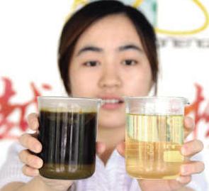 生物質(zhì)能源有限公司工作人員用玻璃燒杯向記者展示了一杯原料“地溝油”和一杯成品生物柴油,相比之下,“地溝油”呈渾濁的黑褐色,并有酸腐臭味,而生物柴油色澤透明澄凈,略帶芳香氣味。