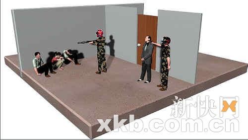 兩男子沖入加油站劫持經理搶劫模擬圖