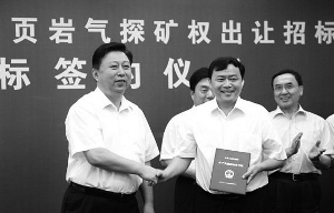 >>>> 今年7月中旬,國土資源部在京舉行了首輪頁巖氣探礦權出讓招標項目中標簽約儀式。此次受邀投標的6家企業均為國企。