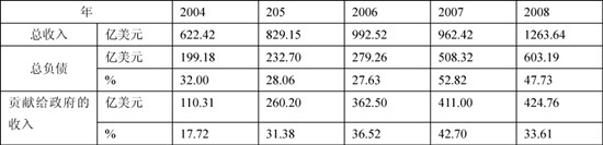 表4 2004~2008年 PDVSA某些財(cái)務(wù)數(shù)據(jù)