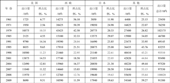 表3 2000~2009年沙特阿拉伯原油出口地區構成