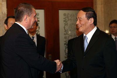 王岐山(右)和俄羅斯副總理謝欽(左)共啟中俄副總理級(jí)能源談判機(jī)制