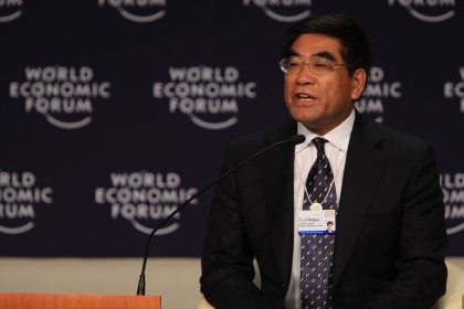 上圖為傅成玉在夏季達沃斯論壇年會上發言。