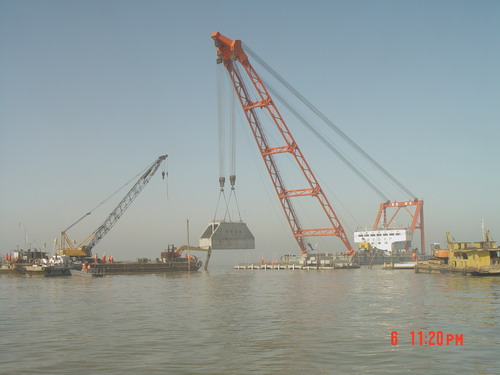 大港油建公司進海路項目部宣布,經過15天作業,這個公司順利將16組箱涵式構件橫向并排安放在進海路灘海水域,每組箱涵式構件承載73.5噸的壓載試驗。目前,箱涵式構件沉降穩定,箱涵速率穩定,符合設計要求。