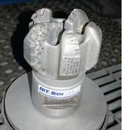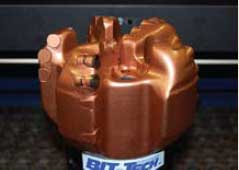Bit-Tech SPH. The B45T is Bit-Tech SPH’s new drillbit series, Figs. 9 and 10. Scott Strange, Bit-Tech SPH president, says the new series has an additional patent-pending, back-to-back, 13-mm and 11-mm tandem-cutter arrangement that will be available in variable configurations custom made for each application, Fig. 11. Also, available will be the new patent-pending variable-groove depth PDC cutters in a flat and dome configuration with a host of other patent pending cutter options, Fig. 12. The B45T is an upgrade from the company’s B45 Series five-blade PDC bit. The B45T is in the early testing stages in Canada and will be available in early 2009 in the US.