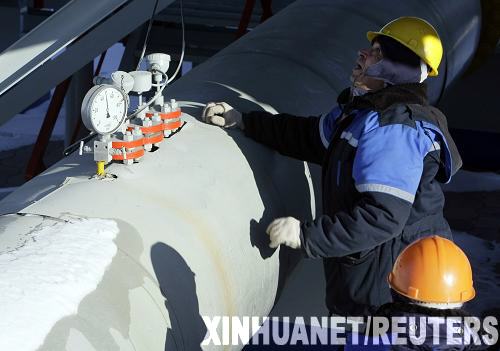 1月13日,在俄羅斯庫爾斯克州境內的蘇賈配氣站,一名工人站在管道旁。據俄塔社13日報道,在中斷過境烏克蘭向歐洲供應天然氣近6天后,俄羅斯天然氣工業股份公司于莫斯科時間13日10時(北京時間15時)宣布恢復向歐洲輸送天然氣。