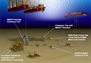 Cameron is using the DC Tree in conjunction with other subsea technology, primarily its high-integrity pressure protection system (HIPPS) and its multiple application re-injection system (MARS), to act as “enablers” to its subsea processing portfolio. HIPPS protects flowlines against overpressure. Equipped with intelligent safety and control systems, the system meets stringent safety levels and ensures constantly high production levels. Additionaly, HIPPS offers the flexibility to extend field layouts and to branch off new lines from existing systems, even when the pressure ratings are different.