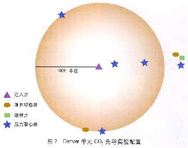 Denver單元的先導實驗是第一個非生產性的、只適用于觀察的實驗,目的是為了評價Denver單元C O2驅的潛力。實驗在一英畝的場地上進行,有一口注人井,3口電纜測井觀察井,一口流體取樣井和5口壓力取心井。此次實驗主要得出三個方面的經驗:(1)儲層均質性嚴重影響著波及效率,飽和度測井表明,約75%的C O2波及了25%的空隙空間,剩余的C O2波及了另外50%的空隙空間,還有25%的空隙空間未被波及;(2) C O2能驅動水驅后的殘余油,殘余油飽和度從30%降低到了10% ;(3) C O2的注人能力隨著驅替的繼續而增加。