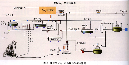在管理和檢測油藏過程中,工程師們發現C O2驅作業比水驅復雜得多,因為注入劑的費用很高,同時管理C O2的再循環量也要注意到經濟性,另外C O2再循環需要進行再捕集、分離和壓縮。同時我們還發現WAG(水氣交替注人)是一項非常有用的技術,在C O2段塞之間注入水段塞推遲了C O2在生產井中的突破,提高了波及效率并降低了C O2再循環速率。但是WAG的最佳比率一直是工程師們研究的重點對象,最終我們發現一個大的連續C O2段塞后接著進行WAG注人的驅替效果比較好,并且通過使C O2段塞逐漸變小直到驅替變為純水驅,可進一步提高采收率。