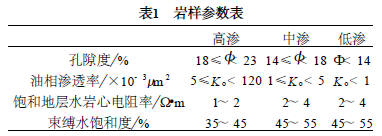 水基鉆井液侵入地層的過程是一個動態變化的過程。對于同一鉆井作業條件, 鉆井液侵入所導致的儲層電性變化在不同的儲層中具有不同的特征。由于打開儲層到完井測井通常有一段時間間隔, 這一過程中鉆井液侵入剖面的變化無法在現場獲得, 只能得到變化后的結果即電阻率曲線。因此, 本實驗通過模擬鉆井液侵入過程及其最終結果, 達到有助于現場測井解釋的目的。同時, 通過測定侵入前后巖心滲透率的變化, 確定鉆井液對地層的損害程度, 為保護儲層技術及正確評價儲層提供依據。巖樣采集本實驗使用巖心為吐哈油田魯克沁某井區巖樣,根據物性差異可分為高滲、中滲和低滲(見表1)。本實驗分3種情況分別進行實驗分析研究。