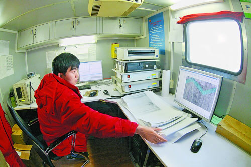 現代化的科研機房。 精心操作嚴把質量關。 技術人員現場服務。 研究施工方案。 在沙漠腹地勘探作業(yè)。 sub_page_cippe 在灘海進行技術攻關...