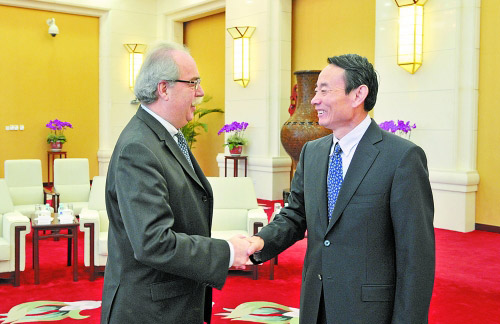 12月22日,中國石油天然氣股份有限公司董事長蔣潔敏總經理會見了道達爾集團總裁兼首席執行官馬哲睿,雙方就伊拉克哈法亞油田等合作項目深入交換了看法。