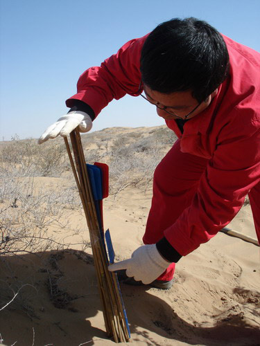 野外沙漠標(biāo)志采用竹竿加長,標(biāo)牌信息清晰,位置準(zhǔn)確。