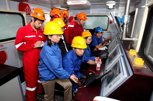 江漢油田第四石油機械廠為中國石油海洋工程有限公司設計生產的2000型海洋酸化壓裂橇裝機組包括16種共25臺設備,能夠滿足海洋酸化、壓裂、防砂等各種工藝施工作業需要。整套機組的研發堅持高起點、高質量原則,瞄準和跟蹤國際領先技術,采用快速拆裝、本質安全型設計理念,設備吊點、吊具由中國船級社CCS認證。機組采用數字化網絡控制技術,實現了供液(酸)、加砂、混拌、壓裂等全過程的集中控制、數據采集和無線監控,提高了現場施工作業的安全性和可靠性。在單機性能試驗和聯機調試中,各項試驗數據顯示,整機性能優良。