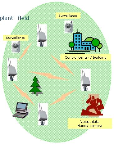 無線視頻監控——通過在油區、電力沿線和煤礦廠區布設mesh 網絡,部署支持Wi-Fi的監控攝像機,電力企業的工作人員可以便捷地對必要區域,實時地監控系統作業和查看系統參數,尤其適用于一些無人值守區域。可以確保安全生產,杜絕事故隱患,提高生產效率。同時,通過采用無線方式,一方面減少了有線電纜的部署成本和企業內施工對生產的影響和不可行性;另一方面也可以便捷調整對現有電力設施和場所的無線覆蓋,例如增減及變更監控點,隨時滿足電力企業安全生產需求