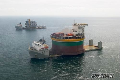 7月25日,中遠航運20000噸級半潛船康盛口輪,在廣州大嶼山錨地采用潛裝方式,成功裝載中海油田服務股份有限公司的“中海油901”、“中海油902”兩艘油田工作平臺往天津。這是中遠航運半潛船首次開拓沿海海上油田工作平臺運輸業務,此必將促進中遠航運在國內海上工程項目運輸的發展。 康盛口輪這次成功裝載的兩座油田工作平臺,由深圳友聯船廠制造,由拖輪將其拖帶到大嶼山錨地實施潛裝作業。