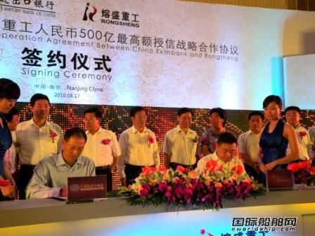 據國際船舶網記者了解,本次簽署的戰略合作協議涉及授信規模最高額將達人民幣500億元,上述授信將由進出口銀行逐步提供至江蘇熔盛重工使用---其為中國熔盛重工集團控股有限公司下屬南通基地,這也是迄今熔盛重工獲得的授信額度最大的合作協議。此次簽約協議規模也刷新了中資銀行對非國有企業授信規模的紀錄。