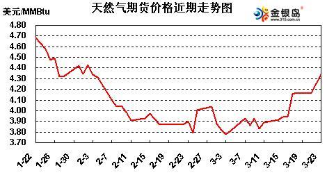 因美國東北部和中西部地區(qū)將出現(xiàn)低溫天氣,投資者看好后期天然氣消費,NYMEX天然氣期貨繼續(xù)攀升,主力合約回歸2月初水平。