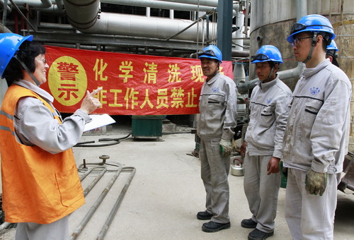 圖為員工正在接受進罐作業前的安全教育。常勇 攝