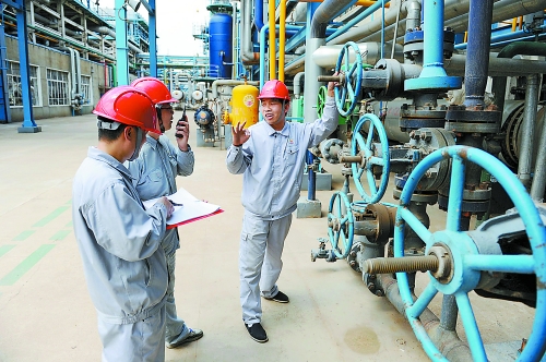 圖為技術人員對三套加氫裝置的氫氣配比進行調整。 張一峰 攝