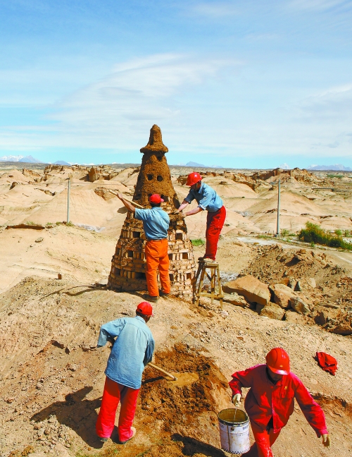 | 作業區壘磚筑巢,為飛鳥蓋起“集體公寓”。 |