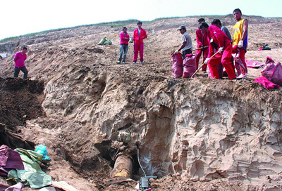 靖邊縣環保局有關人士介紹:“目前,主要措施是清除污油泥,拉到有資質的污泥處理廠處理,并且加固攔油防護壩,防止原油進入水體,F在山體東西兩側已打造8座攔油防護壩,參與搶救人數近600人,其中有300多人是當地群眾。長慶石油公司第三輸油處上報稱有100多噸原油泄漏,由于原油泄漏后大都下滲,現在還無法測量到準確數字。”