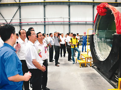 林寬海在致辭中表示,北方工業園項目是牡丹江與中國兵器裝備集團公司的一次成功合作,既是中國兵器裝備集團公司優化風電產業布局、實現風電多元化發展的戰略舉措,也是牡丹江市打造全省風電裝備制造產業基地的重要大型工業項目和戰略性新興產業項目,對夯實我市工業基礎,調優產業結構,促進經濟發展方式轉變具有重要的戰略意義,必將引領和加速我市機械裝備工業整機化、系列化、品牌化進程。項目從去年簽約、奠基以來,在短短一年多的時間里,累計完成投資7.26億元并實現投產,創造了牡丹江市工業項目建設的“北方速度”,成為我市產業項目建設和央企合作的成功典范。