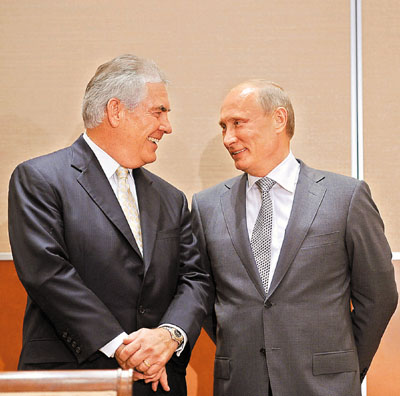 俄總理普京和埃克森主席蒂勒森前日在俄羅斯索契簽署合作協議
