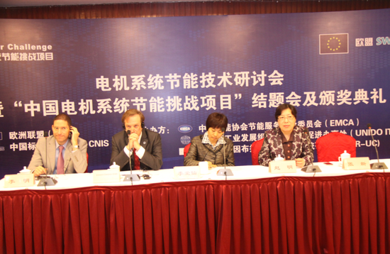 研討會上,歐盟駐華代表處商務、能源和環境處處長李明、中國標準化研究院副院長兼總工李愛仙、中國節能協會節能服務產業委員會副主任兼秘書長趙明、聯合國工業發展組織駐華代表 Edward Clarence-Smith等作了發言,對“中國電機系統節能挑戰項目”給予了高度評價,并對實施了節能量顯著,技術先進適用的電機系統節能項目,頒發了“中國電機系統節能優秀項目”獎。