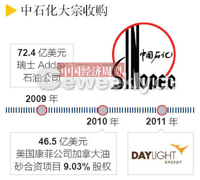 如果此次交易成行,這是中國石化繼去年以46.5億美元收購美國康菲公司在加拿大合成原油公司油砂合資項目中持有的9.03%的股權后,又一大手筆海外收購。