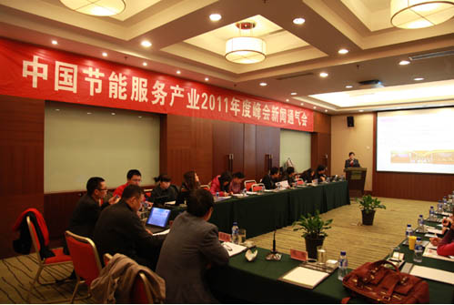 2011年12月15日,“‘中國節能服務產業2011年度峰會’新聞通氣會”在北京中環假日酒店召開。國家發展和改革委員會能源研究所副所長、研究員,本次“2011年度峰會”大會主席戴彥德、中國節能協會節能服務產業委員會(EMCA)主任吳道洪、EMCA副主任兼秘書長趙明、EMCA副主任胡杰以及全國各媒體代表出席會議。會上,嘉賓就中國節能服務產業發展形勢、“2011年度峰會”以及EMCA與2011產業發展情況等問題發表講話。