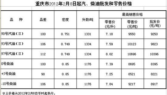 《通知》要求,2月8日零時起,上調國內汽柴油最高零售價。汽、柴油每噸均上調300元,其中90號汽油(標準品)最高零售價格每噸提高300元,即由每噸9250元調整為9550元。