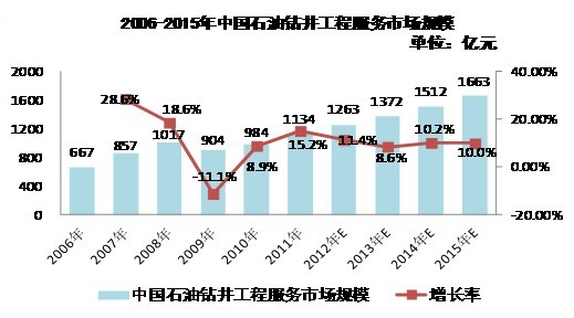 2006-2015年中國石油鉆井工程服務市場規(guī)模