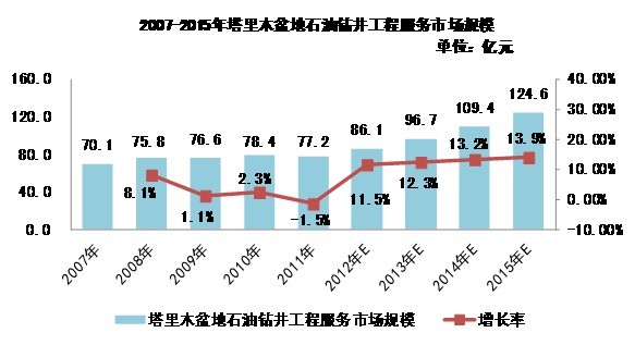 2007-2015年塔里木盆地石油鉆井工程服務市場規(guī)模