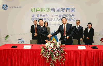GE與“綠色挑戰(zhàn)”中國獲獎者簽署首個商業(yè)合作協(xié)議,將和中國科學院廣州能源研究所合作推動生物質(zhì)秸稈殘渣氣化技術的商業(yè)化應用。2012年11月14日,上海——全球最大的多元化企業(yè)通用電氣(GE)公司今天宣布,將與中國領先的清潔能源技術研究機構(gòu)中國科學院廣州能源研究所(GIEC)進行合作,為其正在研發(fā)和完善過程中的生物質(zhì)秸稈殘渣氣化技術的進一步開發(fā)和商業(yè)化應用提供支持。該技術旨在提高生物質(zhì)能發(fā)電的效率,是GE發(fā)起的“綠色挑戰(zhàn)”中國活動的參賽項目之一。