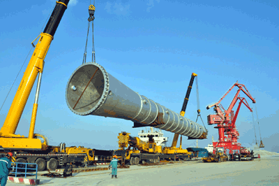 日前,中石化海南煉油核心部件順利運抵天津南港工業(yè)區(qū)通用散貨泊位,并安全吊裝至“金海洋1號”運輸船舶,順利起航。總重達490噸的抽提蒸餾塔是天津南港港區(qū)通航以來接運的最重的大件設備。圖為核心部件運抵天津南港工業(yè)區(qū)泊位。