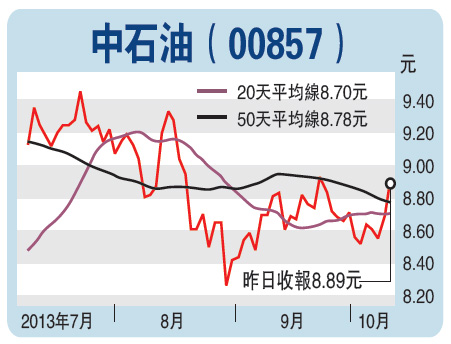 近月一直落后大市的中石油(00857),昨日突然發力,逆市上升二角一仙,以八元八角九仙收市,但短期仍受困在九元至九元二角的阻力區。