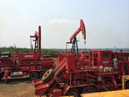 圖為海南福山油田花114-6X井酸化施工現(xiàn)場。 南守芝 尹光偉 攝影報(bào)道