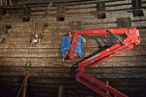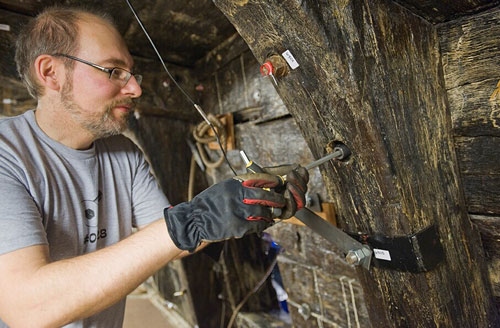 2011年,山特維克與瓦薩博物館便開始著手研究“瓦薩”號的螺栓替換項目。到目前為止,古老的瑞典皇家戰船“瓦薩”號中已更換了1000根新螺栓。考慮到在項目實施的過程中,更換操作可能對船體會造成移動、壓力及沖擊的影響,因此細致的測量與評估工作持續了整整一年。在這一年的工程中,這些進行更換的螺栓通過高級儀器接受24小時不間斷的監測及日志記錄,測量值精確至百分之一毫米。最后的事實證明,前期進行的計算、測試均正確無誤,并且其采用的螺栓嵌入工藝也十分有效。評估結果令人振奮,船體僅有極微小的移動會產生,F在,另外的4000根螺栓也將被更換。