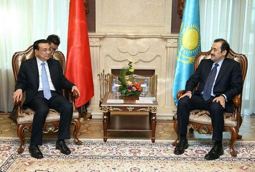 中國國務(wù)院總理李克強當(dāng)?shù)貢r間14日下午在阿斯塔納同哈薩克斯坦總理馬西莫夫舉行中哈總理第二次定期會晤。