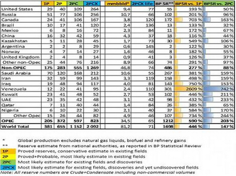 其它全球石油儲量數據,比如備受關注的英國石油公司統計評估數據,其基于各國當局的官方報告而對各國石油產量加以預估,然而其數據顯示美國的石油儲量仍然排在沙特阿拉伯、俄羅斯、加拿大、伊拉克、委內瑞拉以及科威特之后。
